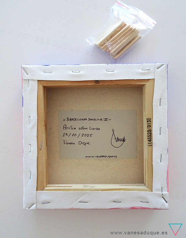 Si no se indica lo contrario, los cuadros sobre tablilla de madera como las series Paletas de Color o Geometrías 3D se envían sin marco ni bastidor, pensados para que tú lo enmarques como más te guste. Si necesitas ideas para colgarlo o un bastidor adicional ¡no dudes en consultarme por el chat!